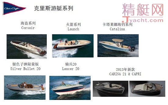 美国克里斯游艇生产的是纯手工打造的游艇,该品牌始于1874年,其船厂是环球最具荣誉的造船厂之一。克里斯游艇的总部设在佛罗里达州的萨拉索塔,在已往的130多年里,这里统共制作了250000 艘游艇,克里斯游艇以此为基地,旗下有三个系列的游艇:海盗系列,火箭系列,卡塔莱娜系列,以及银色子弹20和骑兵20两个单独生产型号,在天下各地有 73家署理商。